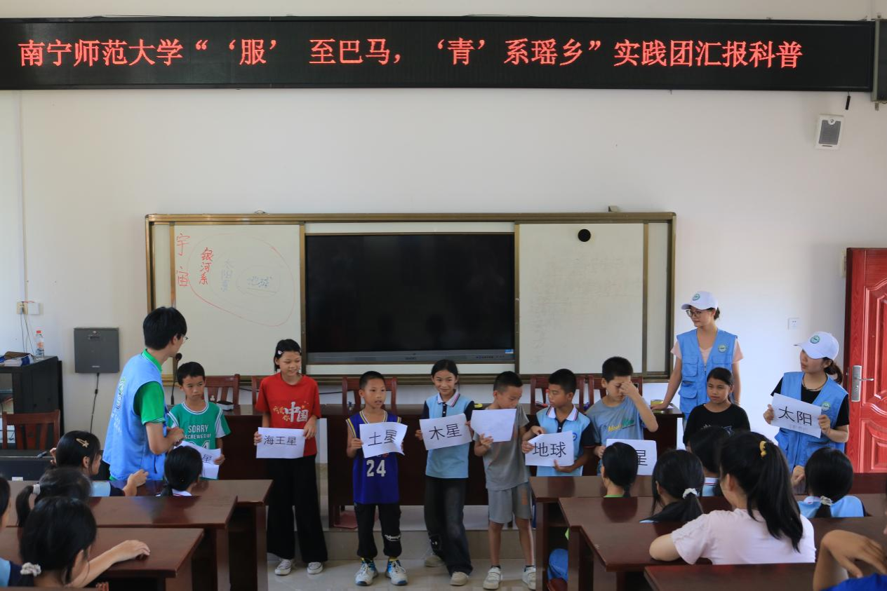2024年7月8日,必赢国际bwin,bwin手机版,win必赢app下载“‘服’至巴马,‘青’系瑶乡”社会实践团在巴马瑶族自治县燕洞镇中心小学成功举办了一场别开生面的天文科普宣讲活动,为乡村的孩子们搭建起了一座通往宇宙奥秘的桥梁。