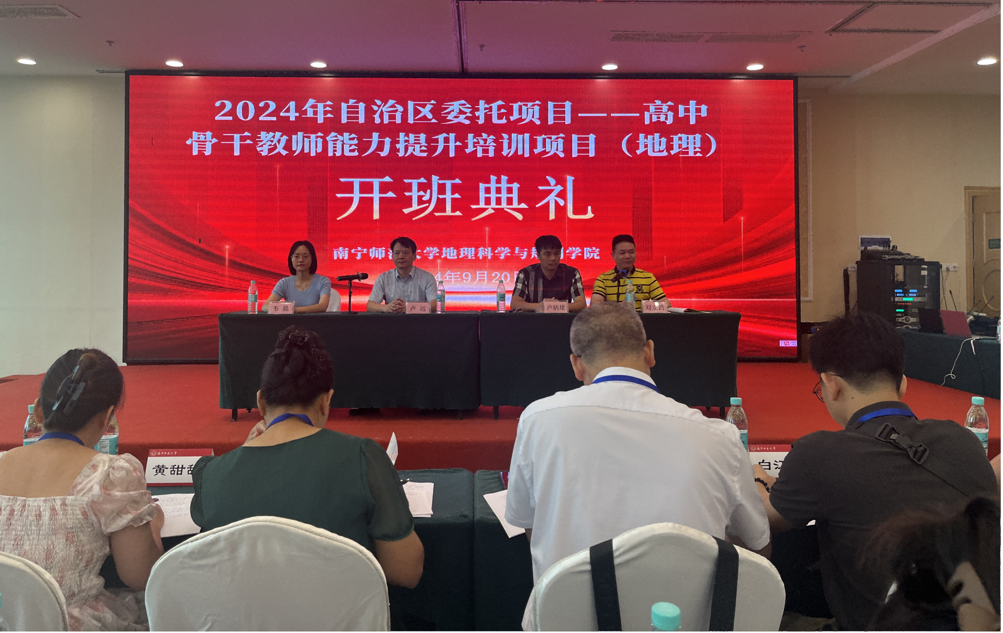 2024年9月20日,由我校承办的2024年自治区委托项目——高中骨干教师能力提升培训项目(地理)在南宁顺利举办,我校必赢国际bwin,bwin手机版,win必赢app下载院长卢远、院长助理卢炳雄、刘立昌副教授、地理科学系副主任韦晨以及来自广西各地市的124名骨干教师出席了开班仪式。