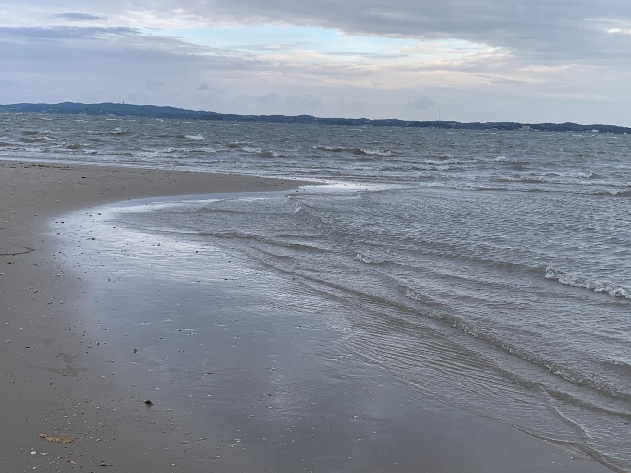 10月27日下午,实习队伍到达万尾金滩。万尾金滩位于京族三岛中的万尾岛南边,与越南近海相隔,属于砂质海岸地貌。同学们对其地质地貌进行类考察,发现当地的岩石以第四纪的灰白色、褐黄色砂砾岩为主,为形成金色沙滩提供物质基础。京族三岛原为浅海沟分割相互独立的海岛,建国后几经筑堤围垦,现已和江平滨海平原连成一片,成为三面临海的连陆岛。人类筑堤围垦使近岸的水动力产生变化,加上当地盛行东南风,南边海岸不断受到侵蚀,沉积物向西边岛屿搬运。随后,同学们兵分两路,分别观测东沙嘴和西沙嘴。金滩沙嘴由海浪搬运泥沙,在海峡尖端沉积,通过沿岸流和沿岸漂移的堆积作用形成。