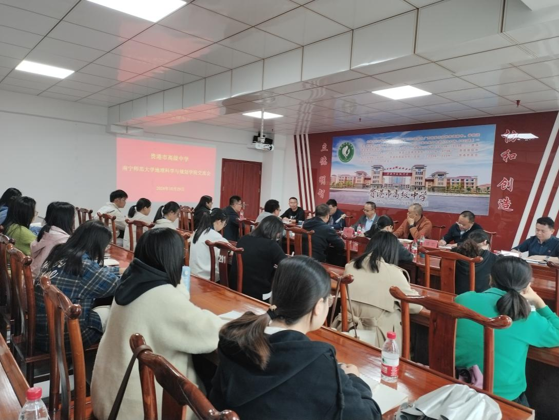 2024年10月29日上午,在贵港市高级中学汇德楼10楼1005会议室开展贵港市高级中学与必赢国际bwin,bwin手机版,win必赢app下载交流会。会议由贵港市高级中学杨奕宁副校长主持,必赢国际bwin,bwin手机版,win必赢app下载严志强书记、盛凯副书记、刘立昌副教授、全体地理实习老师以及贵港市高级中学陆卓纯校长、杨奕宁副校长、姜攀主任、包春梅主任、杨晟彬主任、郑耀亮主任等人参加。会议议程主要是五个部分:杨奕宁副校长致欢迎词,实习生代表发言,姜攀主任汇报地理实习生实习情况,严志强书记发言,陆卓纯校长总结发言。