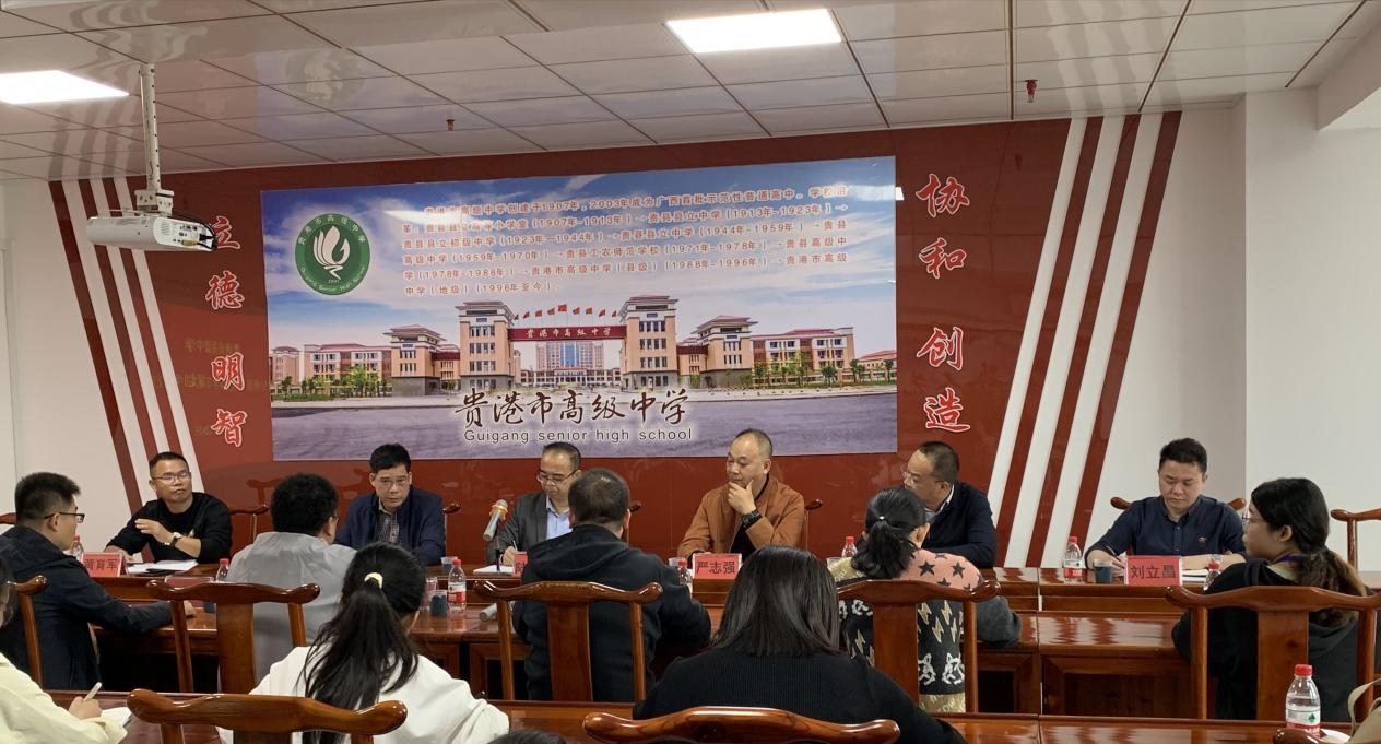 在会议上,杨奕宁副校长简单介绍贵港市高级中学的基本情况并致欢迎词。随后,实习生代表何爱甜和姜攀主任分别对实习生近一个月的备课、上课、班主任工作等实习情况进行汇报总结。紧接着,严志强书记和陆卓纯校长也对实习生的工作给予高度认可,认为两校应当密切友好往来,希望两校能携手共进,互帮互助,共同进步。