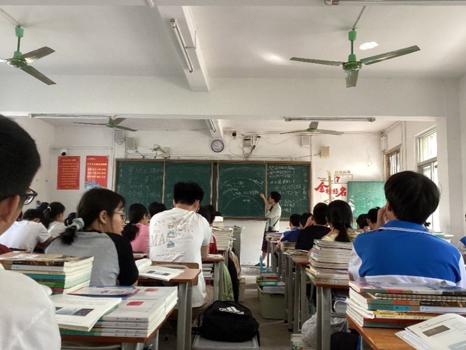 (实习老师们在听贵港市港北区高级中学梁木仙老师的课)