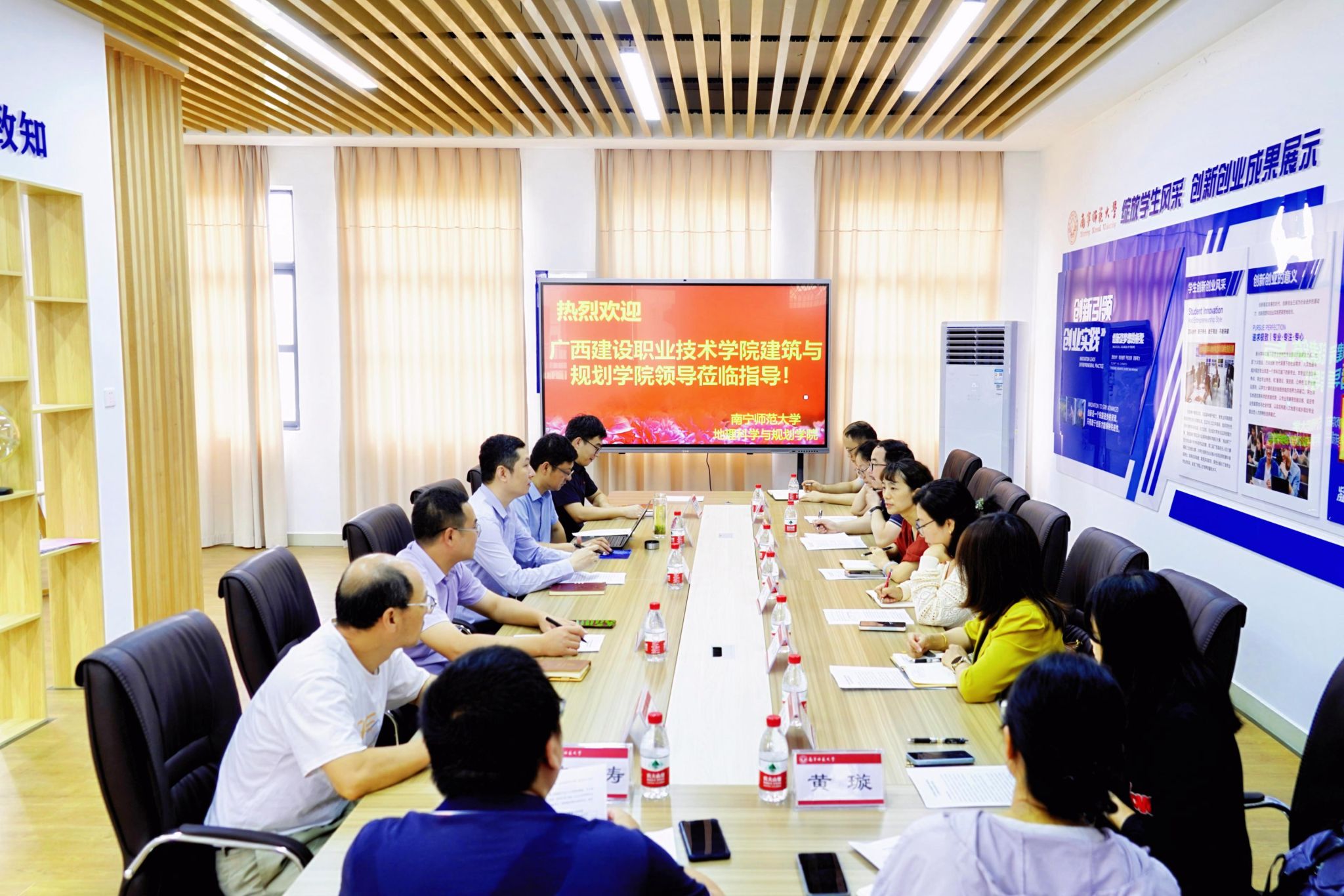 4月30日,广西建设职业技术学院建筑与规划学院副院长肖剑一行9人到必赢国际bwin,bwin手机版,win必赢app下载进行调研交流。学院罗国玮副院长及人文地理与城乡规划系的教师代表热情接待肖剑一行。