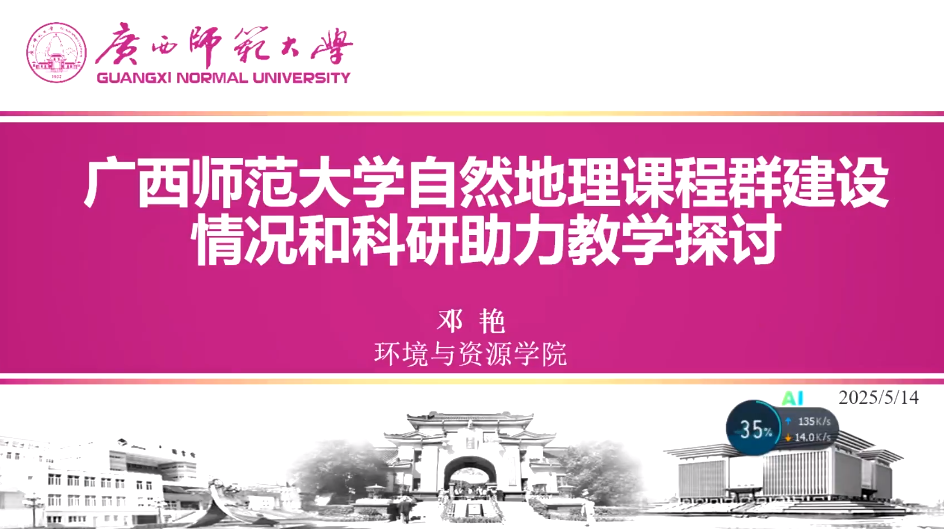 广西师范大学环境与资源学院邓艳教授以“自然地理课程群建设情况和科研助力教学探讨”为主题,详细介绍了该校自然地理课程群的建设成果与未来规划,并以自然地理课程群为例,从项目助力教学、成果进教学、思路引教学三个角度,分享了科研反哺教学的创新模式,为地理科学教育的改革与发展提供了宝贵经验。