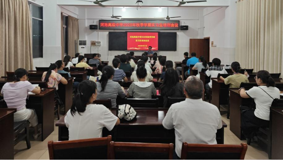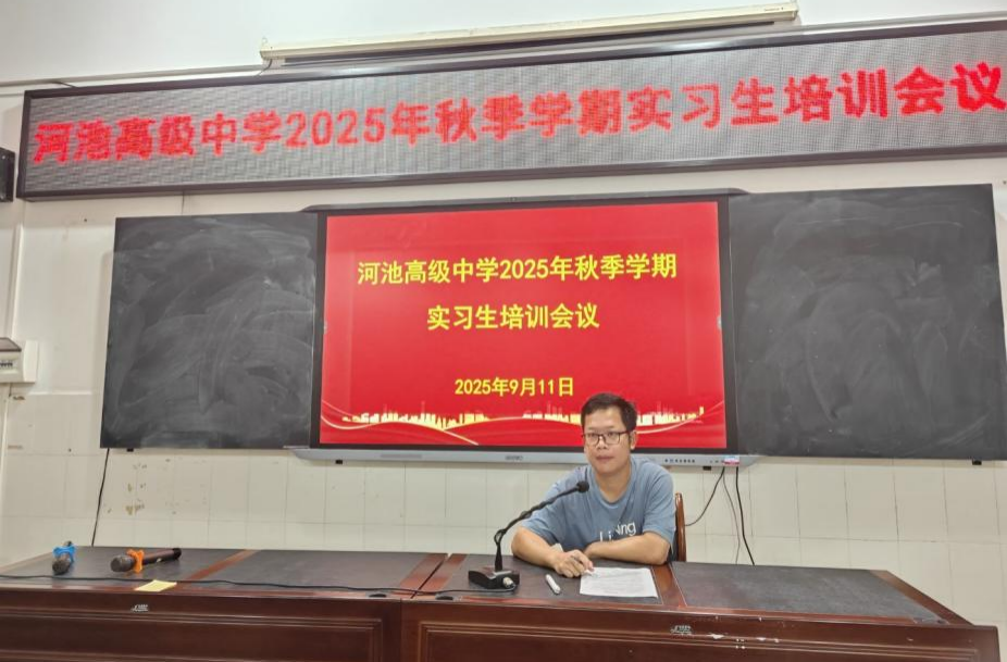 到校当晚,为了帮助实习教师尽快适应中学教育教学环境,积累教学与管理实践经验,学校召开了2025年秋季学期实习生培训会议,由高一年级主任蓝秀根主持。会议首先明确了实习教师的主要职责,包括参与地理学科教学及协助班主任开展日常工作,如班级管理、宿舍检查与相关材料整理等。并对实习教师校园行为规范和授课标准提出相应要求