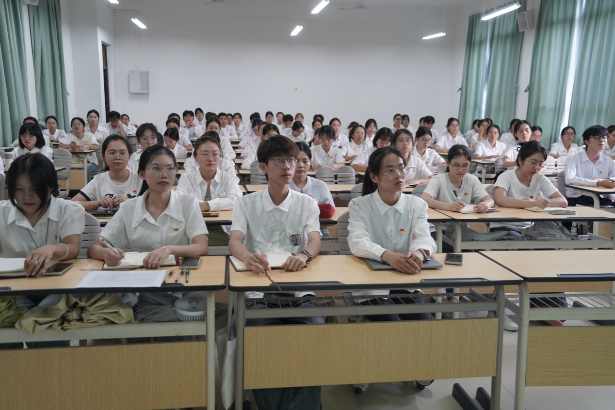 此次报告会采取现场参与与集中收看网络直播相结合的方式,有效扩大了覆盖面,确保了学习效果。学院与会党员统一身着正装,党徽佩戴规范、熠熠生辉,全体师生神情专注、坐姿端正,展现出对学习内容的高度重视和严肃认真的态度。