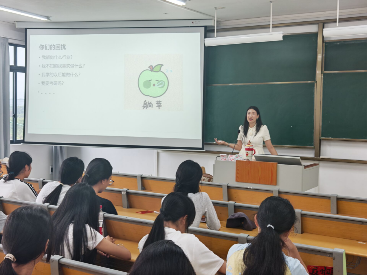 讲堂过程中,熊一颖老师结合自身经历,分析了同学们初入大学常见的烦恼,并分享了相应的解决方法。在学习上,熊一颖老师建议同学们主动规划时间,巧妙借助AI工具、学习软件,多和朋友互相监督来提高学习效率;在生活中,她鼓励同学们多锻炼,多交友,尊重个体差异,重视心理健康问题;对于未来的就业规划,她认为同学们可以放宽眼界,不必局限于家乡的岗位,多进行尝试,享受工作带来的成就感。