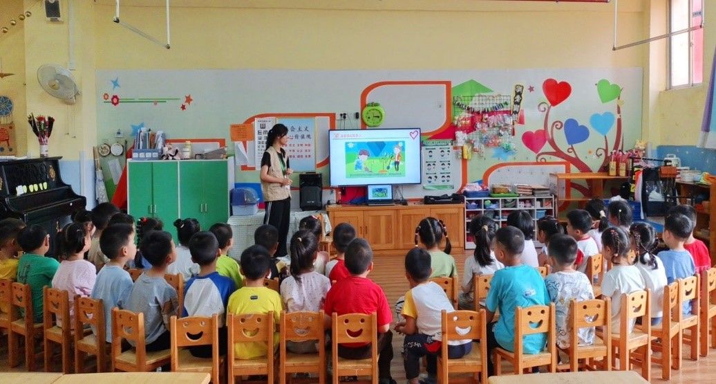 (支教队员向小朋友们讲述温室气体的相关知识)