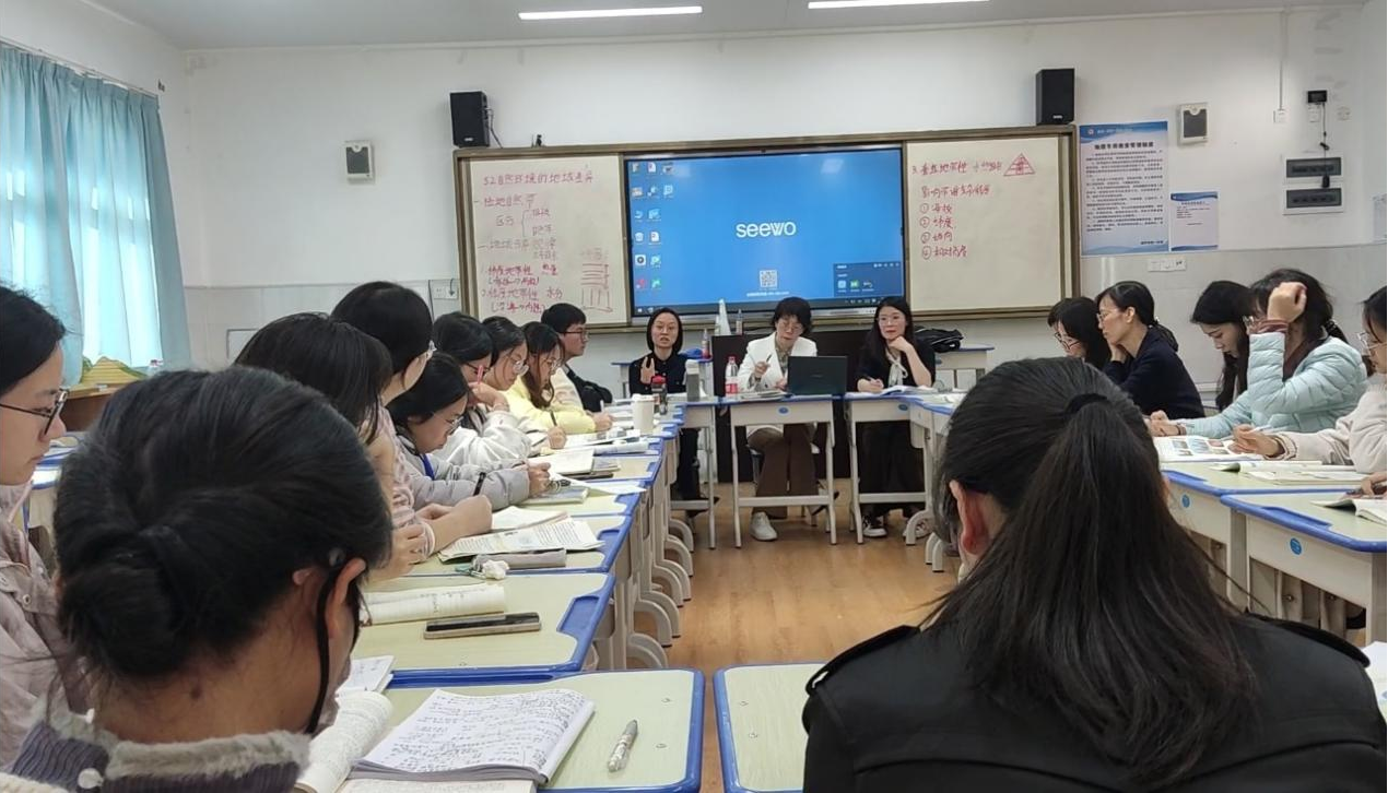 会上,廖老师着重强调如何从知识告知到核心素养的培养,教学如何在高一高二渗透核心素养这一重要问题。廖老师结合自身经历以及自己对高考、学考的研究引出当前更好辅助教学的前沿专业研究—学历案文本的设计,用以解决课程容量大,重难点突破,体现学生真实学习经历等。同时回应老师们关于新高考的提问,从高考评价体系“一核四层四翼”中的“四翼”(考基础、考综合、考应用、考创新)分析本次深化课程改革的关键在于从考试的端点撬动新教学改革,廖老师指出在一线教学中应加强研究新课标修订后的高考真题,分析真题对地理核心素养及关键能力的考查以及情境的呈现,她建议在教育教学中用单元式、专题式训练的方式备考,并适当将大单元的教学设计与高一高二教学衔接进行有效融合。最后,双方继续就教育教学等问题进行深入探讨交流,同时也期待双方能够更深一步合作交流!
