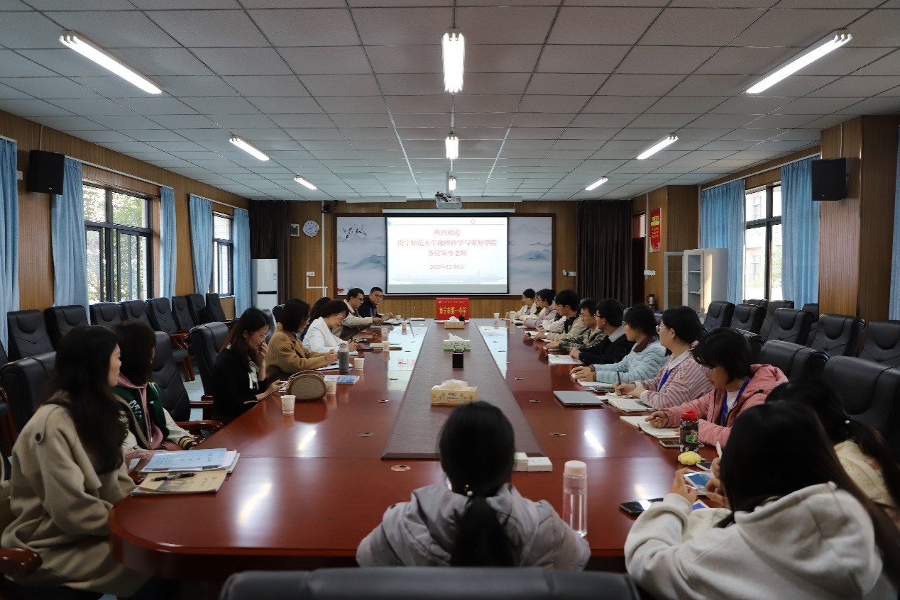 2023年12月8日上午8点,必赢国际bwin,bwin手机版,win必赢app下载(以下简称:地理学院)2021级陶行知实验班13名同学在学院指导教师廖伟业副教授和韦晨副主任的带领下与南宁市第一中学(以下简称:南宁一中)在2号楼会议室召开教育研习与实习阶段总结会,会议由南宁市第一中学教务处主任陈兆坚主持。学校工会主席张清、全体地理学科指导教师、部分班主任及必赢国际bwin2名教育硕士一同参加总结会。