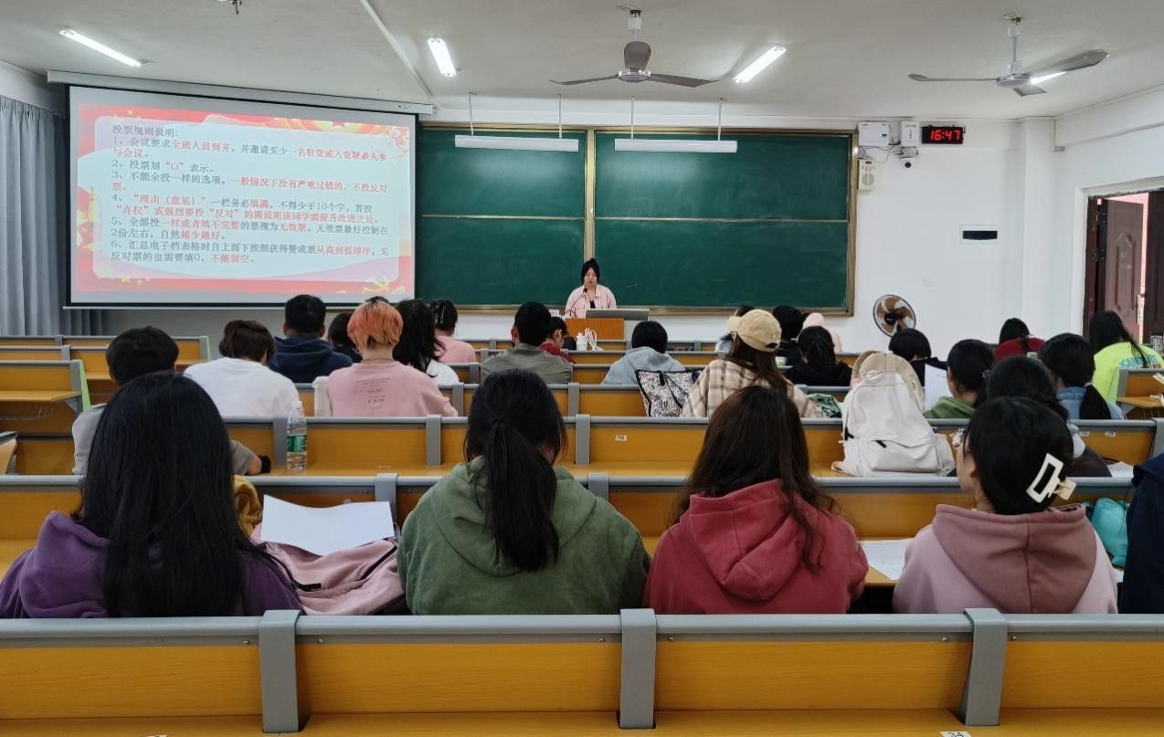 为进一步加深同学们对党的认识,激发共青团员的入党热情,增强组织的凝聚力,11月22日,必赢国际bwin,bwin手机版,win必赢app下载2022级地科三班在武鸣校区实验2-A202教室召开2023年第一批入党积极分子推选会议。2022级地科三班全体同学及驻党李韩琪参加会议,会议由团支书欧阳婷婷主持。