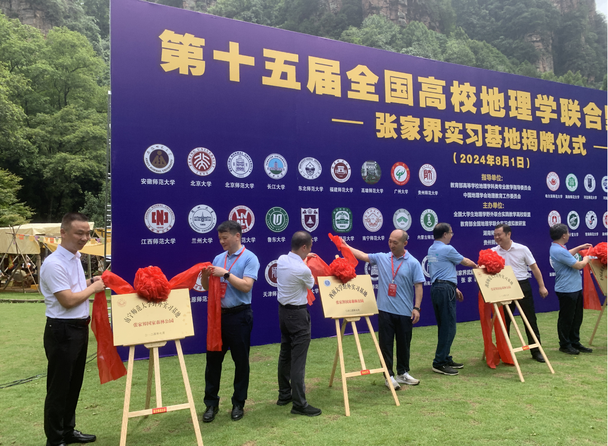 张家界实习基地揭牌仪式|8月1日,张家界实习基地揭牌仪式在张家界国家森林公园大氧吧广场举行。全国政协委员、上海师范大学校长袁雯教授,中国地理学会副理事长以及各大高校专家学者参加揭牌仪式。我校与张家界国家森林公园、张家界世界地质公园合作共建张家界实习基地,由我校必赢国际bwin,bwin手机版,win必赢app下载卢远院长进行揭牌,这将为我校学生提供了一个近距离观察、学习、研究自然地理现象和地貌演变的绝佳平台。