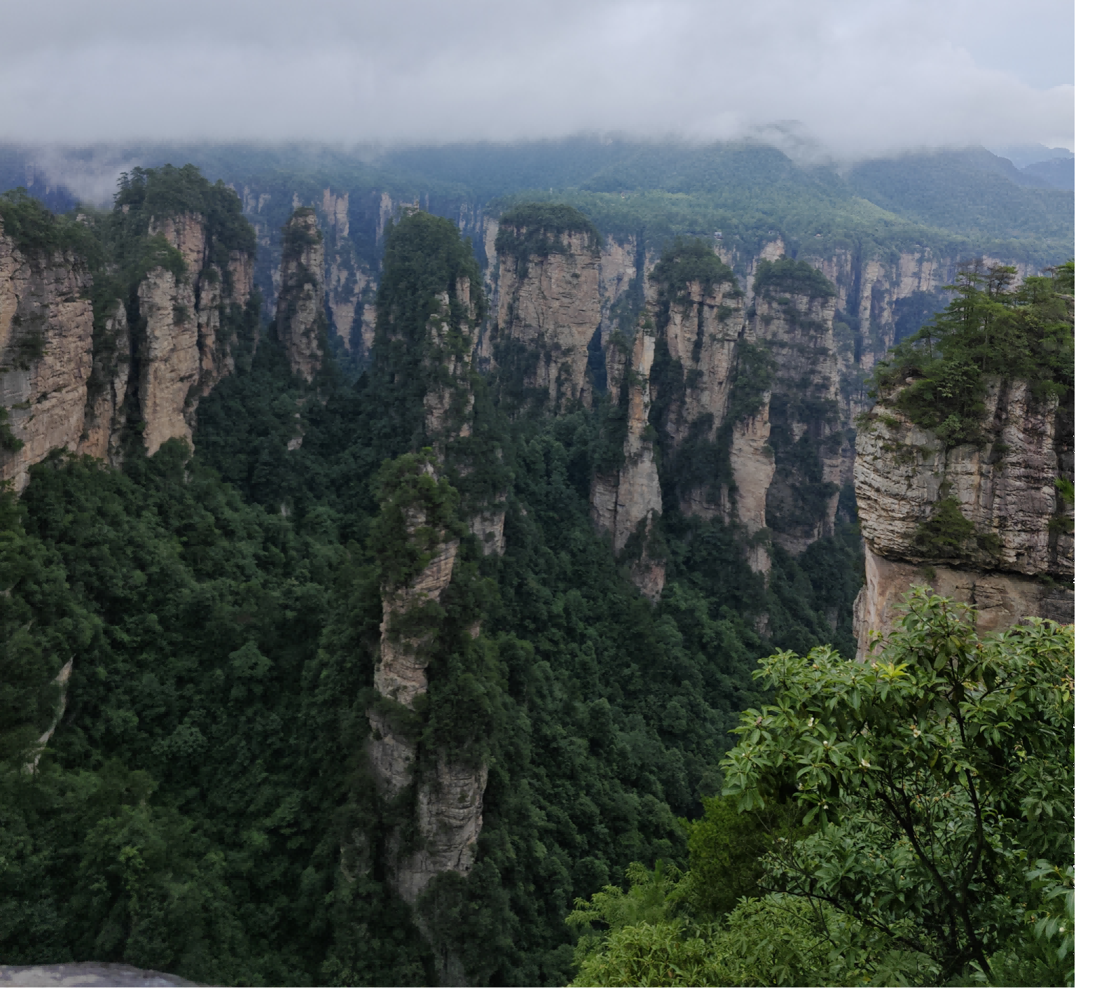 黄石寨-金鞭溪|8月1日上午,我们乘坐索道前往黄石寨,黄石寨属于平台方山地貌,可观测到峰林、峰丛、石柱和石墙等地貌景观。北部天桥遗墩是典型的峰丛,沿途的南天柱属于石柱地貌景观。同时,黄石寨内生态丰富,拥有众多野生猕猴,孕育着丰富的植物种类。因此,带队老师也为我们布置了以小组为单位辨别五种植物和五种草药的任务,同学们下山途中认识了许多植物,切身感受到了张家界国家森林公园丰富的植物资源,体会当地气候、地形、土壤、水文等要素与植物的相互作用。