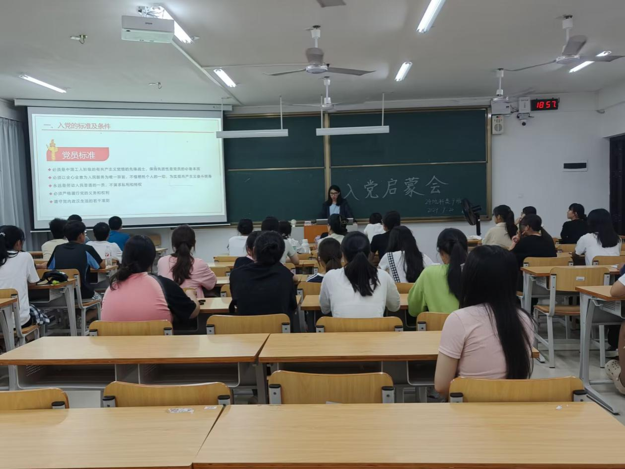 会议伊始,孙正淑同志介绍了党的光辉历史,详细讲解了申请入党的必要条件和入党的完整过程,向同学们直观地呈现各个阶段的入党流程。紧接着,孙正淑同志和韦巧慧同志从自身角度出发,向同学们分享了自己的入党心路历程,以此鼓励同学们积极向党组织靠拢。随后,在自由提问环节,同学们针对入党的基本知识踊跃提问,两位驻班党员同志为同学们答疑解惑。