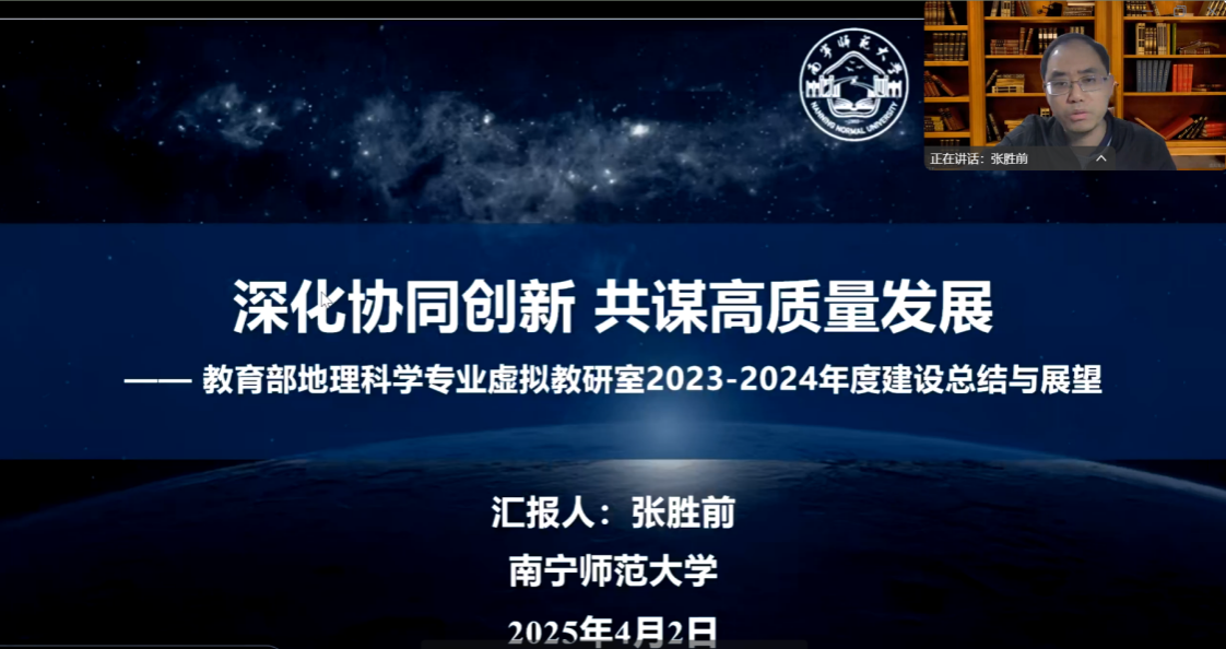活动伊始,必赢国际bwin张胜前教授以《深化协同创新共谋高质量发展:教育部地理科学专业虚拟教研室建设总结与展望》为题进行报告,报告全面回顾了2024年度虚拟教研室建设进展年度报告,展示了新版虚拟教研室功能以及知识图谱、能力图谱服务升级等内容。这不仅展示了虚拟教研室在技术层面的创新,更为地理教育的数字化转型提供了有力支撑。 同时,报告还对2025年的系列教研活动进行了详细规划,涉及地理教师教育课程群、自然地理课程群、人文地理课程群、信息地理课程群和地理实践课程群。这些规划将进一步加强课程群之间的协同创新,促进地理教育的全面发展。