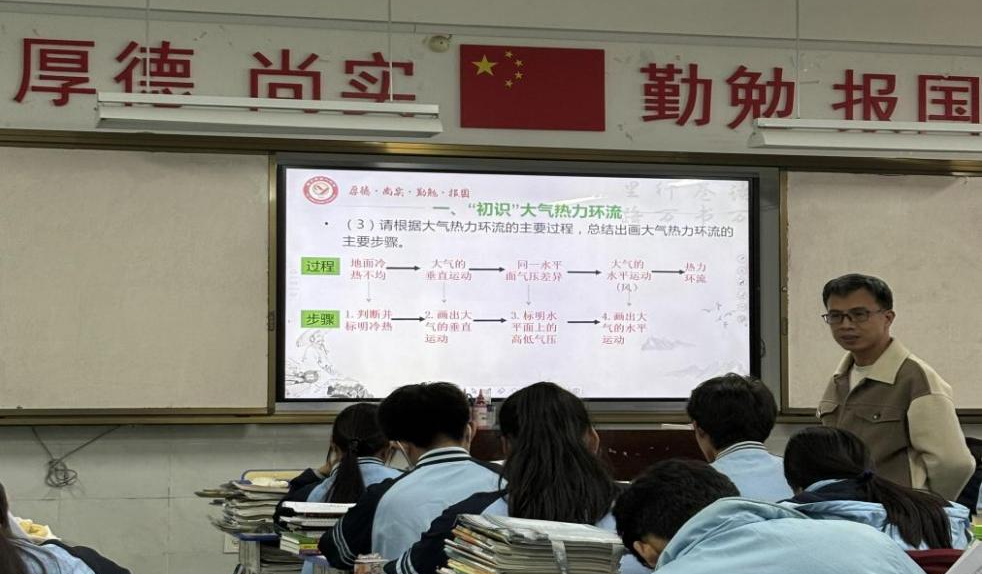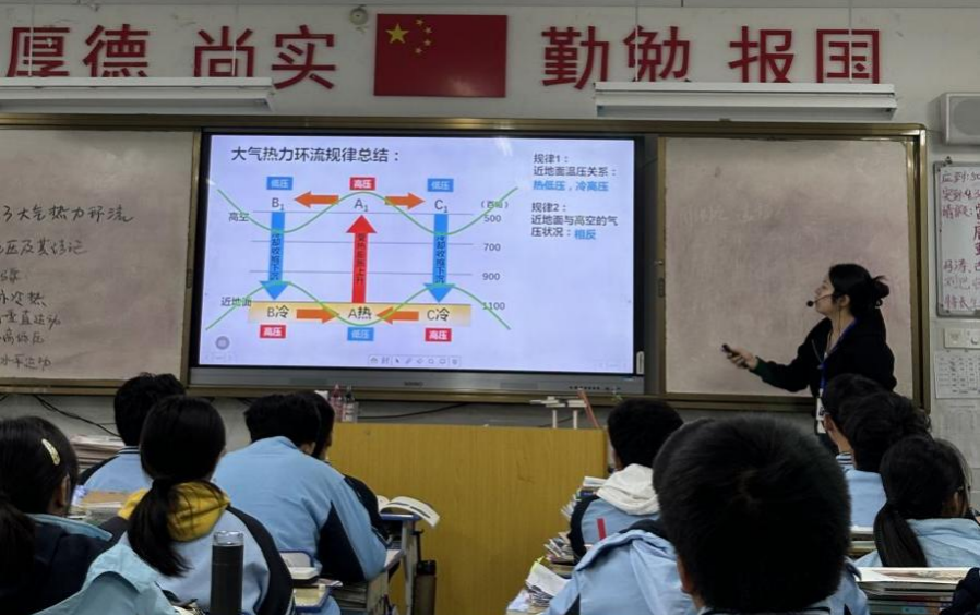 夏瑜聆:近期,我有幸聆听了多堂关于大气热力环流的精彩授课,收获满满,深受启发。老师的导入巧妙又吸睛,拿出一小盆热水、一小盆冰块,现场模拟地面冷热不均,水汽的流动变化直观呈现,瞬间激起同学们的探索欲。讲解新知识时,手绘板图,搭配PPT里色彩鲜明的动态气流示意,把抽象的热力环流具象化,降低理解难度。课堂互动更是一大亮点,课程贯穿穿堂风案例,同学们热烈讨论、各抒己见,老师穿梭其间耐心引导,最后精准总结,不仅让知识内化,还培养了学生逻辑思维与合作能力。教态方面,老师们亲和从容,时刻捕捉学生的疑惑神情,及时调整节奏。这些教学智慧与技巧,让我对大气热力环流教学有了全新认知,往后定融入自身课堂。