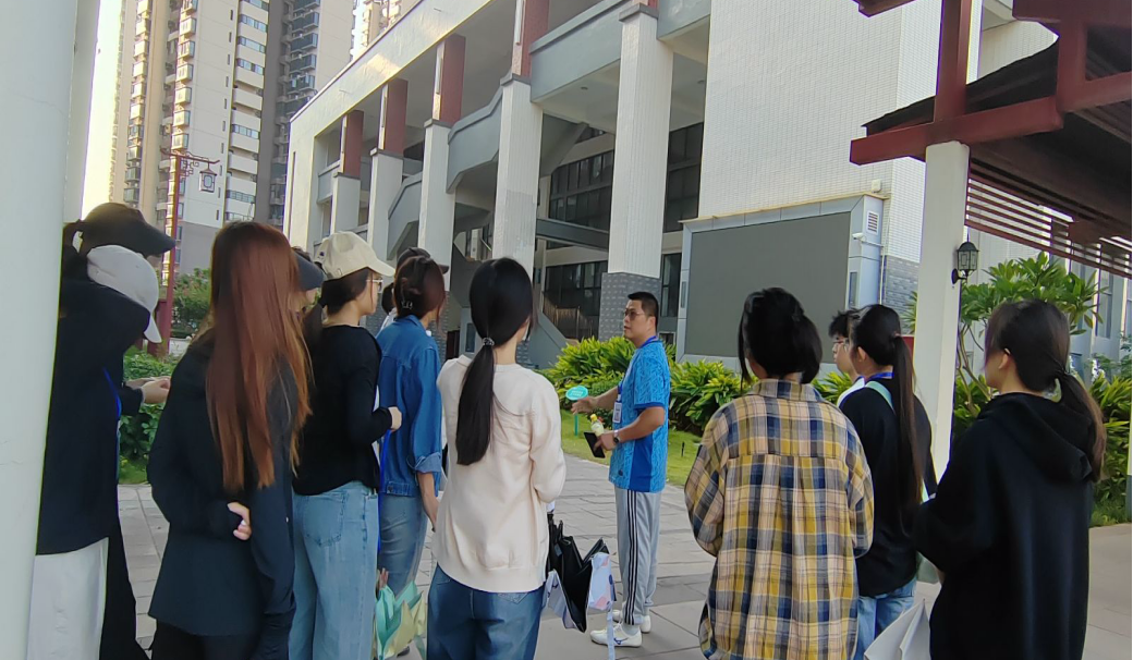 (学校教务处陈兆坚主任带领实习老师参观学校)