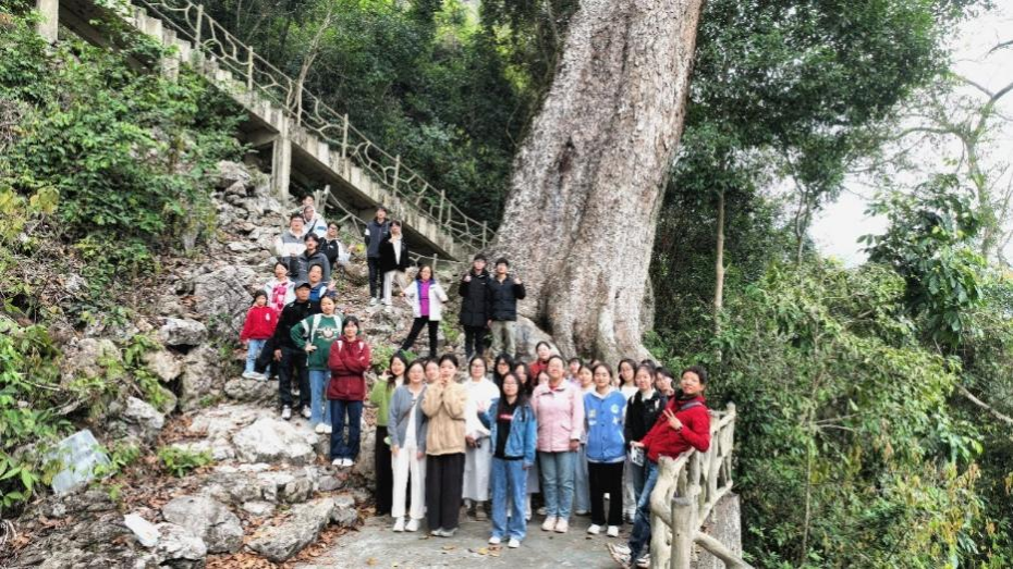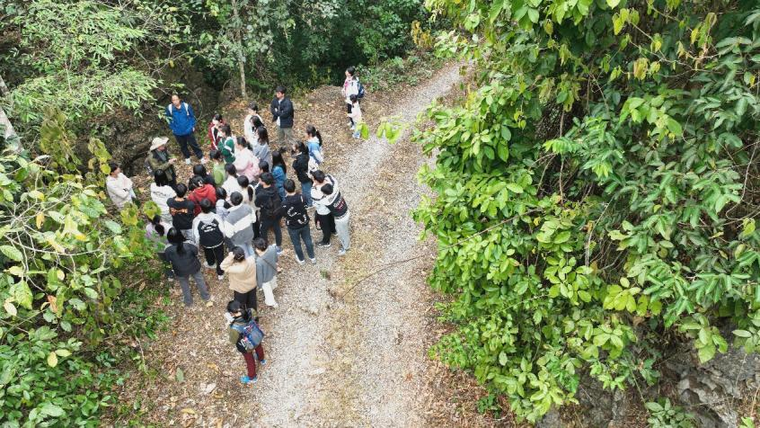 实习第四天,大家共同探索弄岗国家级自然保护区。在工作人员带领下,我们近距离观察珍稀动植物,参观千年古树,了解保护生物多样性的重要性。保护区地处典型的喀斯特地貌区,峰林、溶洞、地下河等景观丰富多样,为动植物提供了独特的生存环境,植被以热带季雨林为主,树种丰富,层次分明,为野生动物提供了充足的食物和栖息地。