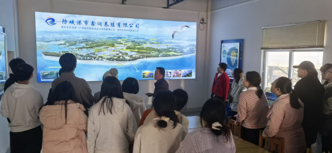 这趟旅程从渔光互补养殖基地开始,在基地工作人员介绍下,同学们认识到现代渔业新型养殖模式以及前沿技术,如水循化恒温跑道式对虾养殖,可实现产量是传统土塘养殖的10倍,基地渔光互补养殖模式不仅最大限度利用土地资源,更为基地提供充足的能源以及为水产品生长创造一个适宜的新环境,同时先进海水处理、污水净化、藻类培植等技术对水产品产量的提高和环境的保护提供了巨大贡献。迎着海风,踩着波光粼粼的海滩,大家来到簕山古渔村。广西防城港市港口区光坡镇簕山古渔村,是一个具有数百年历史的古老渔村,其以独特的建筑风格、丰富的海洋文化和淳朴的民俗风情而闻名。村内保存着许多古老的建筑和设施,如古戏台、古井、石磨等,这些古迹都见证了渔村的历史变迁。在这里,同学们可以看到村民们至今仍保留着传统的捕鱼方式,如拉网、撒网、钓鱼等。