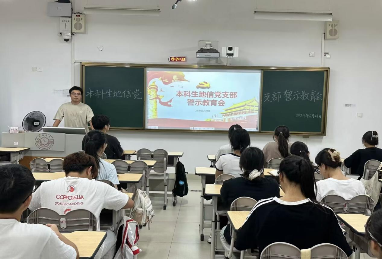 6月29日,必赢国际bwin,bwin手机版,win必赢app下载本科生地信党支部在武鸣校区2号教学楼103教室举行党纪学习教育第五次集中学习。会议由支部书记罗岩同志主持,全体党员参会。