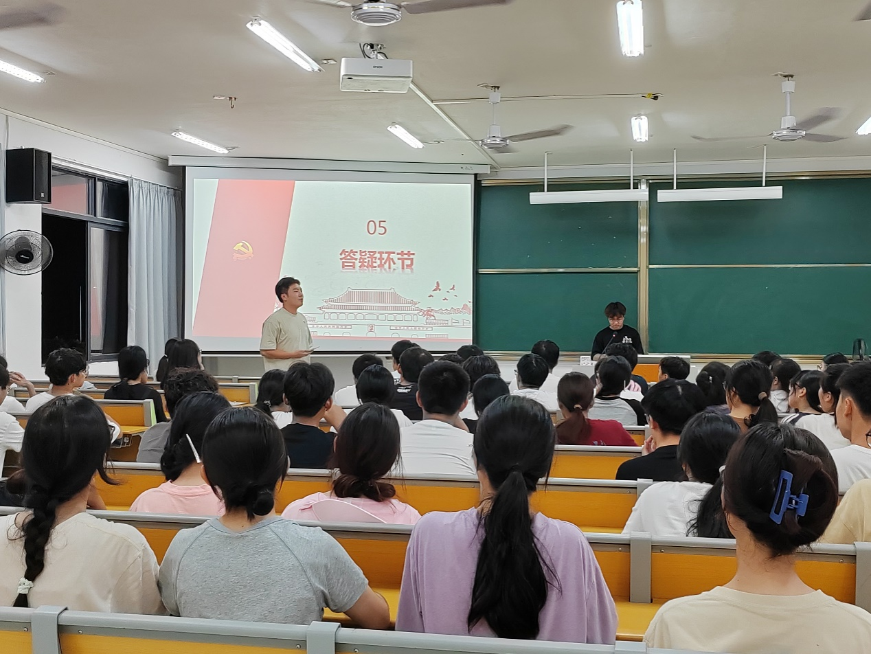 在自由提问环节,支部书记罗岩同志和宣传委员方家鑫同志分别就新生提出的疑问进行解答。