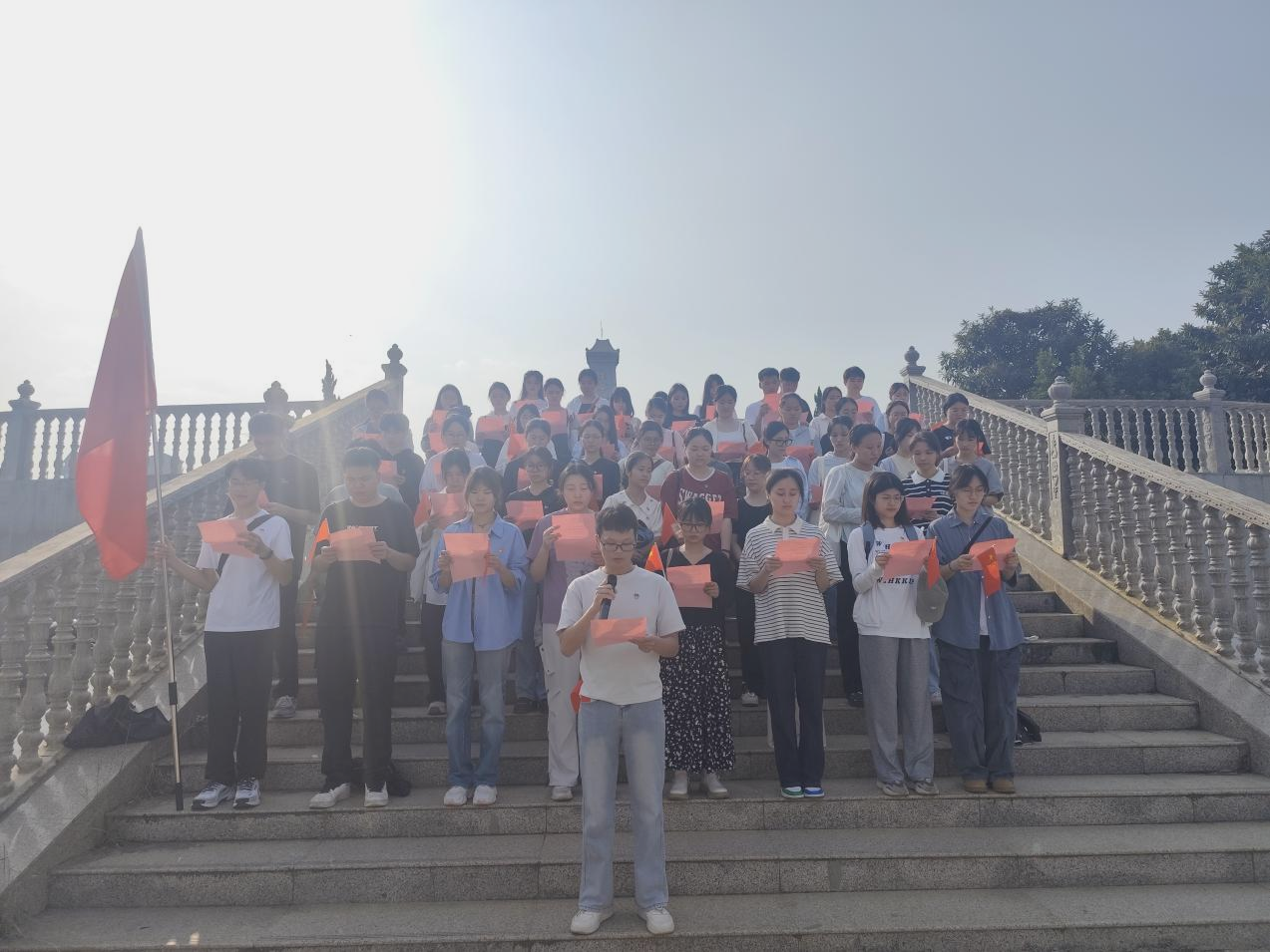 活动伊始,支部成员参观了夏黄桥头阻击战遗址,在工作人员的讲解下了解夏黄桥头阻击战的历史。紧接着,支部成员前往革命纪念碑前举行献花缅怀仪式。仪式上,全体参与人员齐唱国歌,静默哀思,并向纪念碑敬献鲜花。随后,全体参与人员前往同心文化广场参观陈列室,深入学习和了解武鸣夏黄村的抗战历史及革命先烈的英勇事迹,并在支部组织委员黄日铭同志的带领下重温入党誓词。