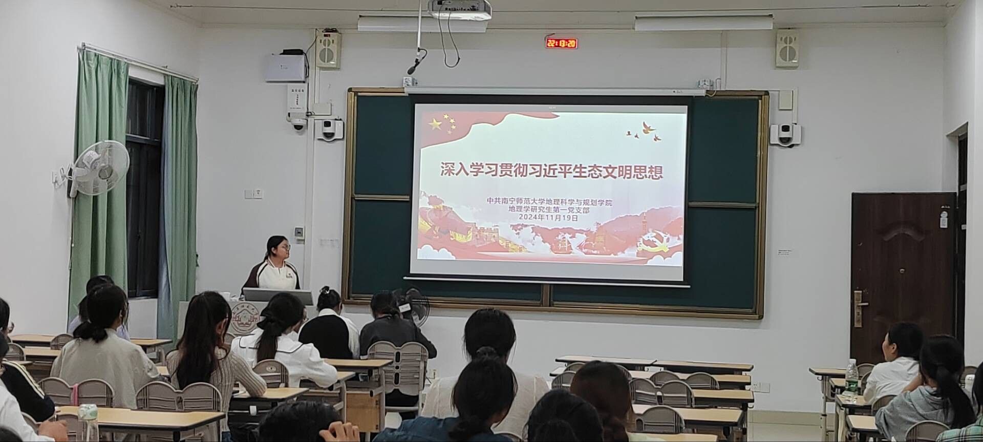 2024年11月19日,必赢国际bwin,bwin手机版,win必赢app下载研究生第一党支部在武鸣一号教学楼411教室开展“深入学习贯彻习近平生态文明思想”党日活动。会议由朱淑妍同志主持。