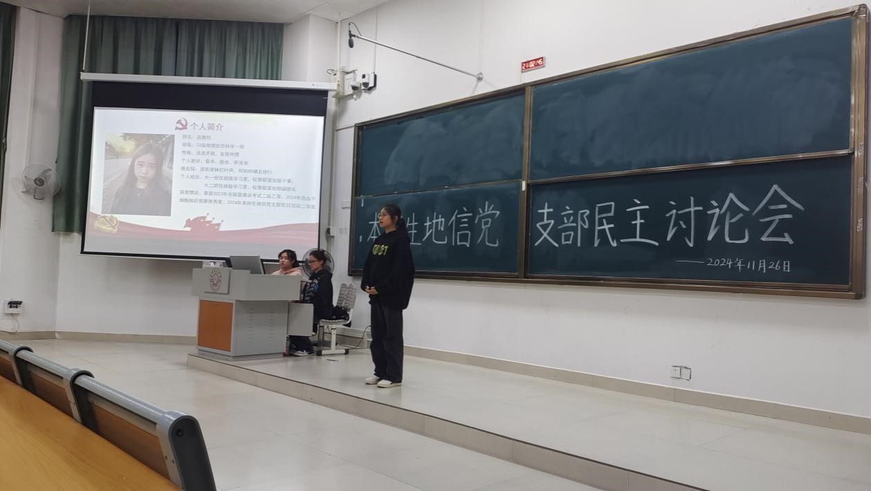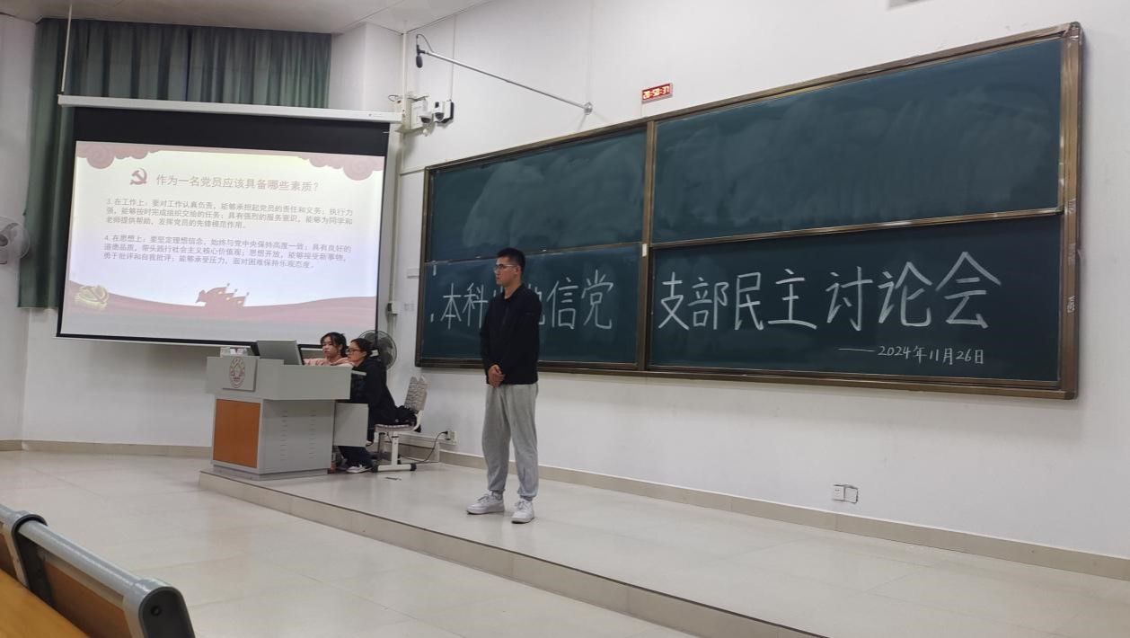 11月26日,必赢国际bwin,bwin手机版,win必赢app下载本科生地信党支部在必赢国际bwin武鸣校区1号教学楼214教室开展民主讨论会。本次会议由黄梦瑶同志主持,支部全体党员和各班积极分子共同参会。