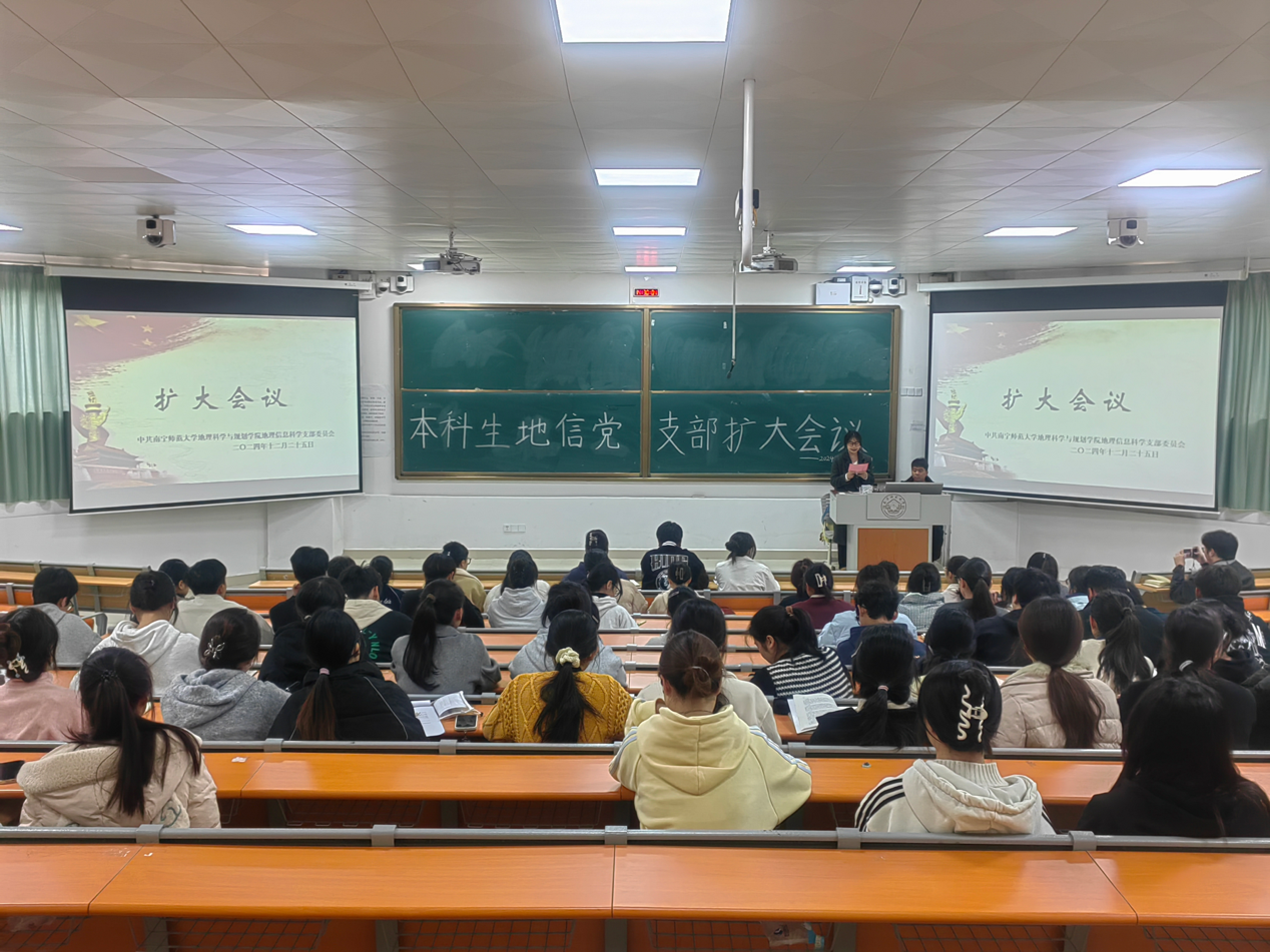 12月25日,必赢国际bwin,bwin手机版,win必赢app下载本科生地信党支部于必赢国际bwin武鸣校区1号教学楼115教室召开扩大会议暨支部党员大会。本次会议由覃玉雯同志主持,支部全体党员、发展对象以及各班积极分子共同参会。