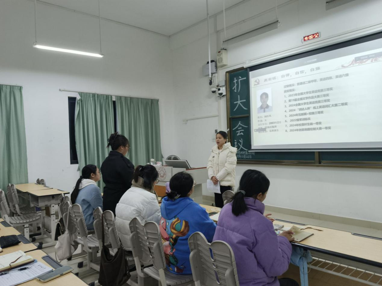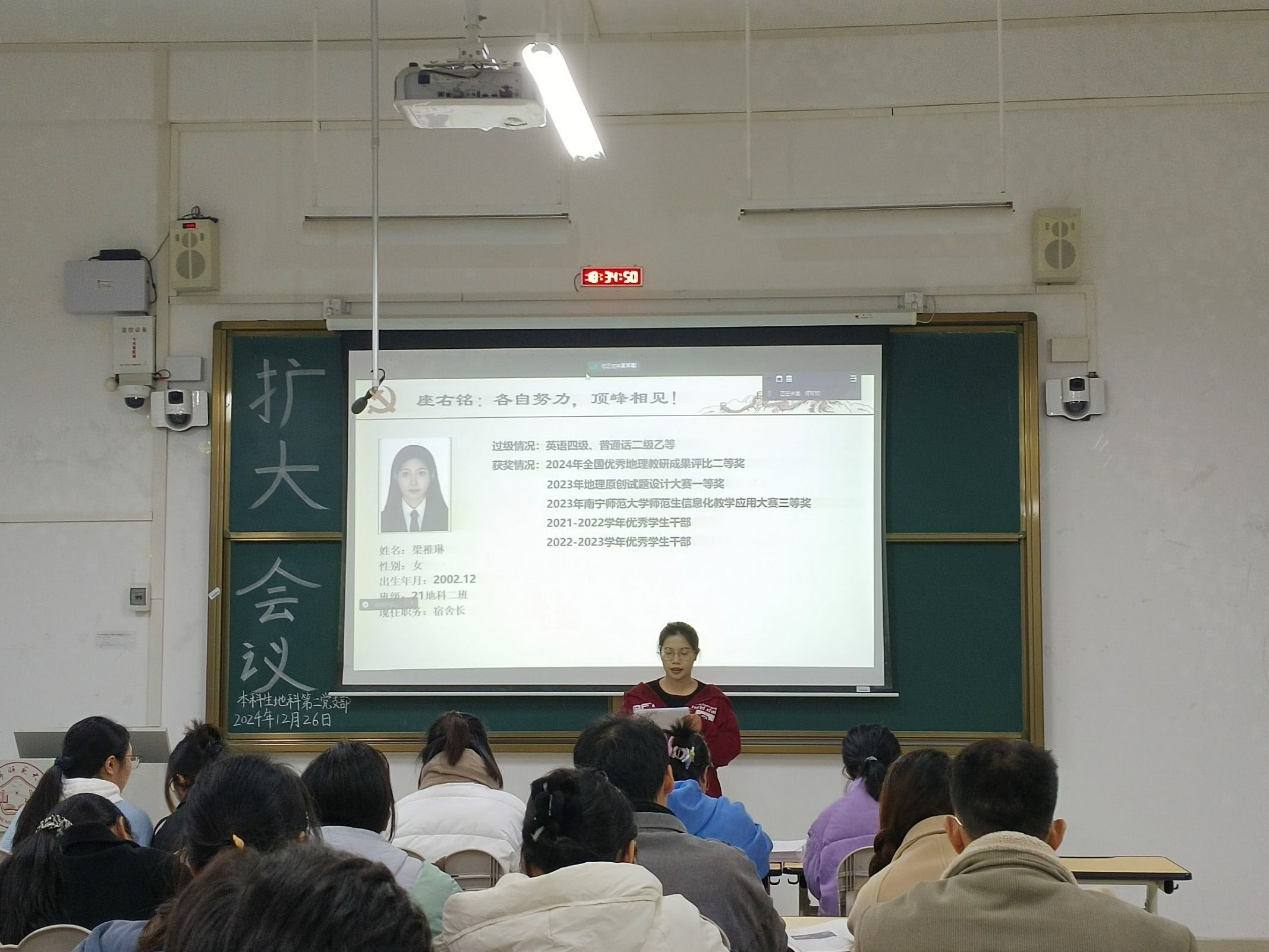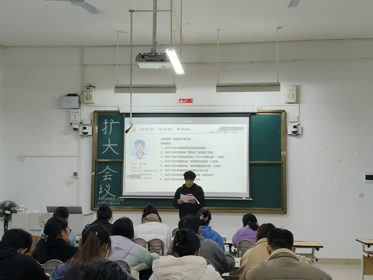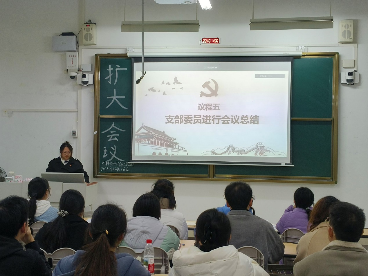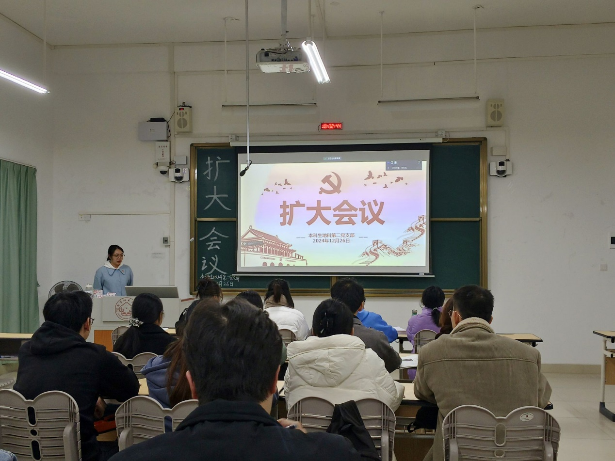 2024年12月26日,必赢国际bwin,bwin手机版,win必赢app下载本科生地科第二党支部在武鸣校区1号教学楼120教室召开2024下半年扩大会议。本次会议由支部组织委员黄小同志主持,支部全体成员参会。
