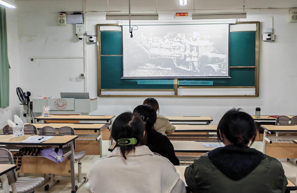 2024年12月27日,地理学研究生第一党支部第四党小组在武鸣校区1号教学楼219教室开展主题为“忆峥嵘岁月,聚前行力量”的党建一刻钟活动,活动由黄华静同志主持,全体党小组成员参与。