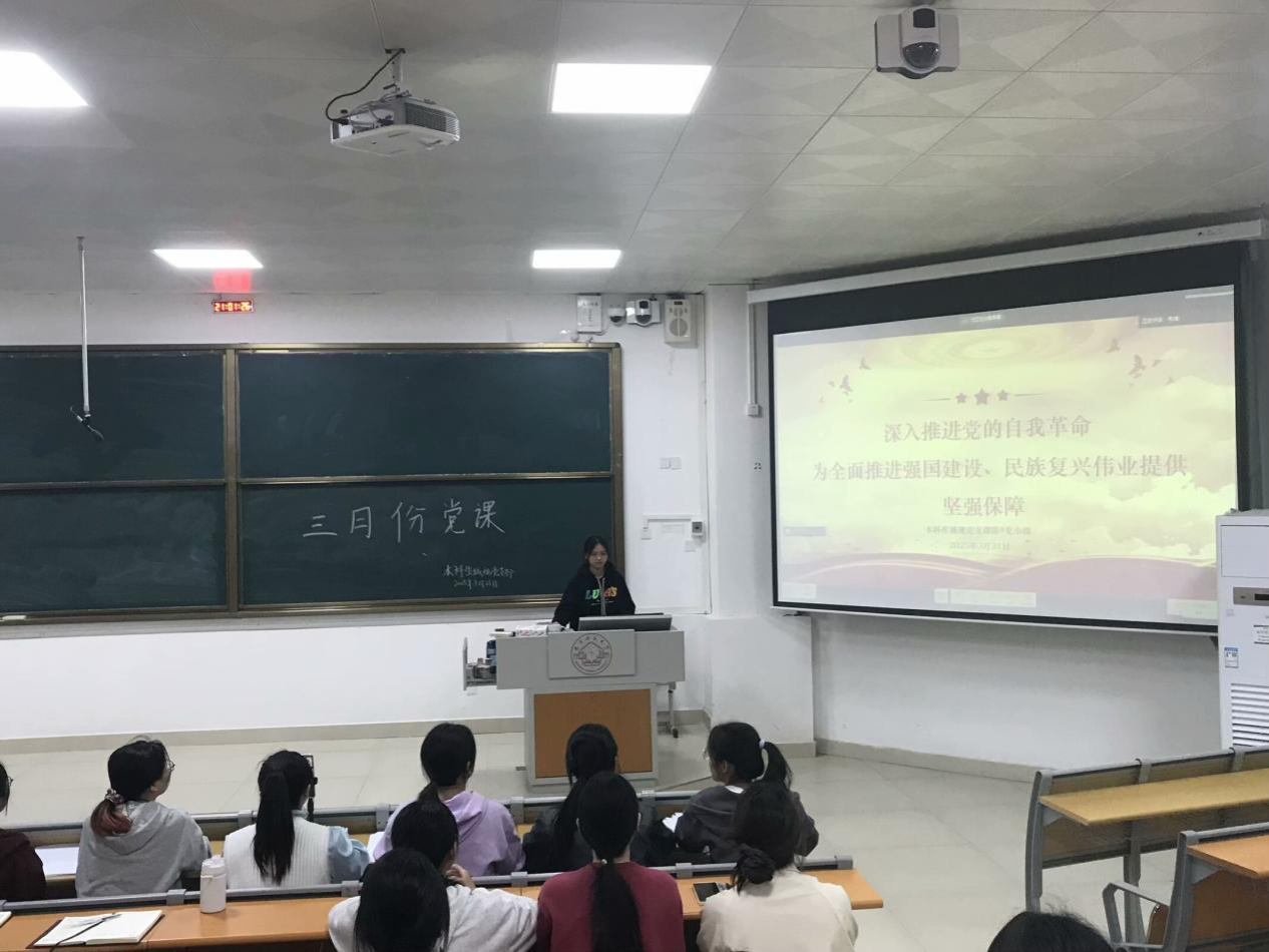 2025年3月21日,必赢国际bwin,bwin手机版,win必赢app下载本科生城规党支部在武鸣校区2号教学楼109教室开展“深入推进党的自我革命,为全面推进强国建设、民族复兴伟业提供坚强保障”主题党课。本次党课由陶丽同志主持,支部全体党员参会。