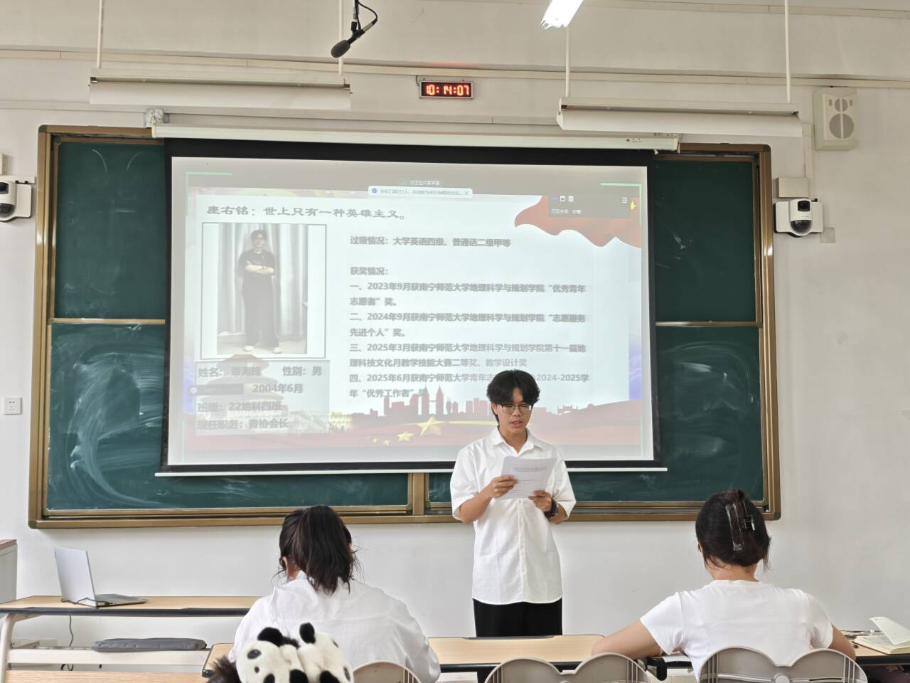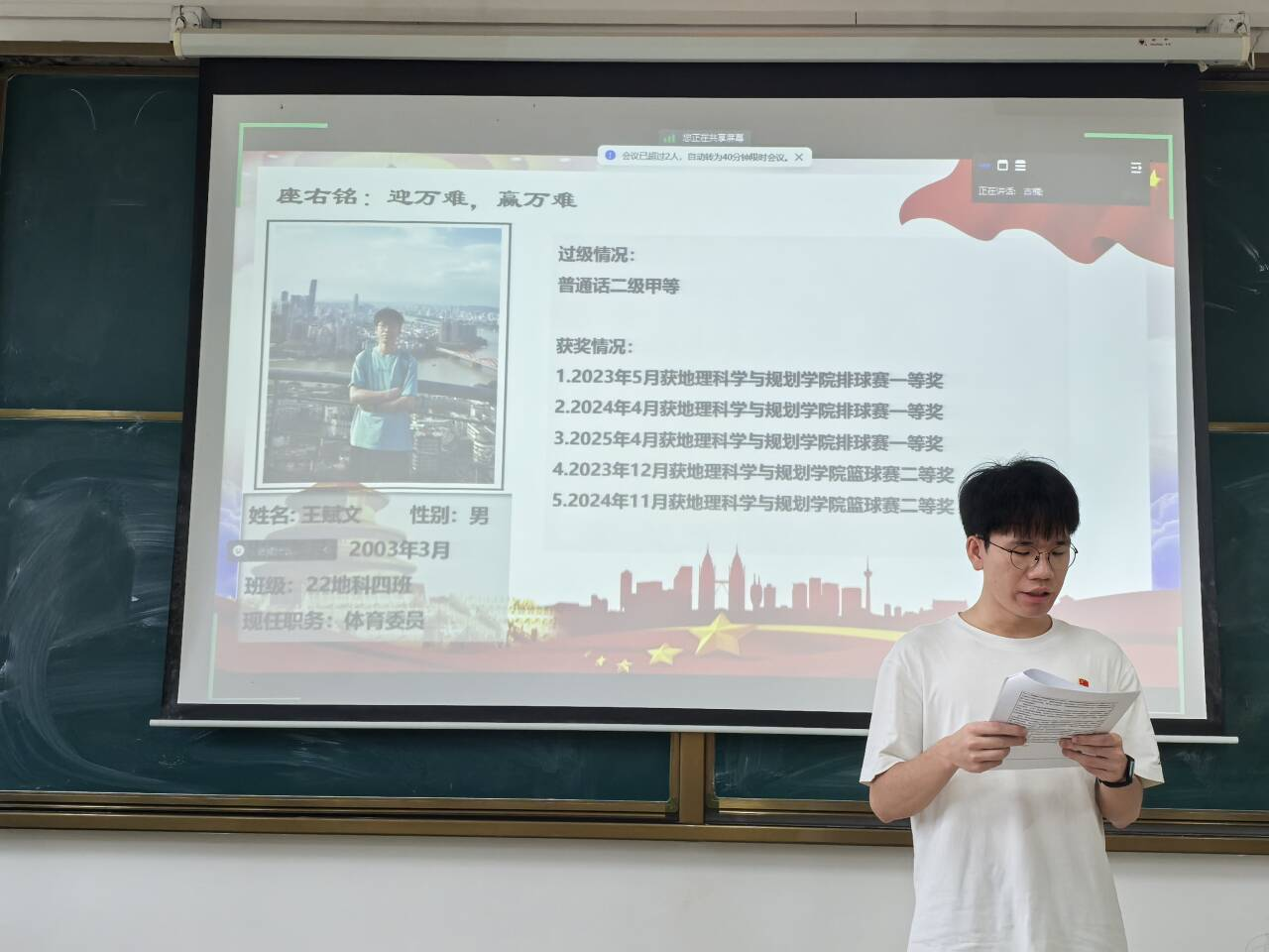6月16日,必赢国际bwin,bwin手机版,win必赢app下载本科生地科第一党支部在武鸣校区2号教学楼216教室召开了2025年上半年扩大会议。会议由支部组织委员胡佳琦主持,支部全体党员及15名发展对象共同参与。