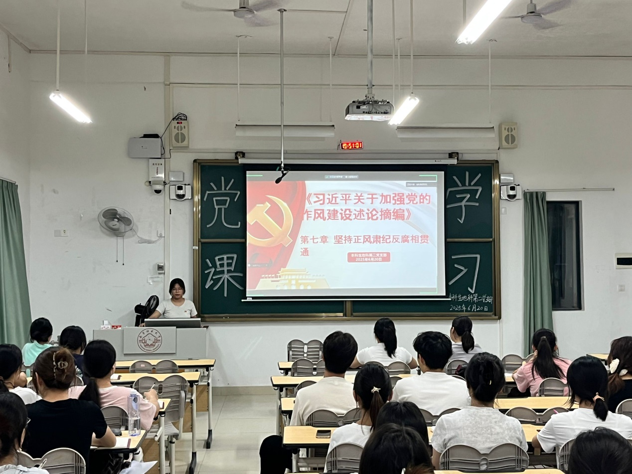 6月20日,必赢国际bwin,bwin手机版,win必赢app下载本科生地科第二党支部在武鸣校区1号教学楼116教室组织开展“坚持正风肃纪反腐相贯通”专题党课学习。本次党课由党支部书记冼晶晶同志主持,党支部全体党员共同参与。