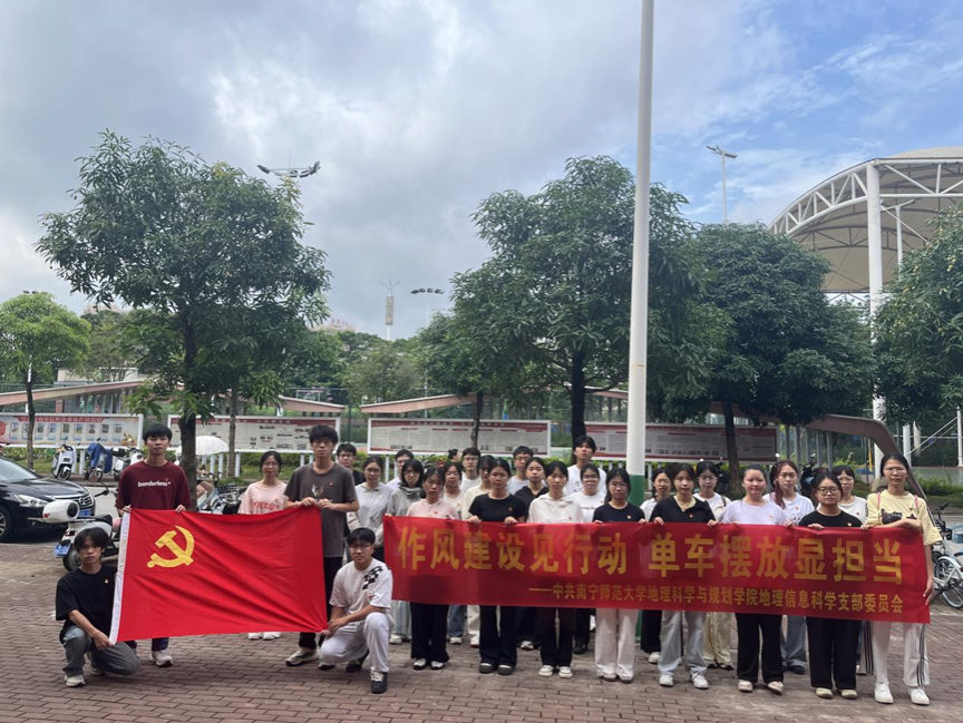 6月28日,必赢国际bwin,bwin手机版,win必赢app下载本科生地信党支部在武鸣校区桂园食堂和兰园食堂周围开展以“作风建设见行动,单车摆放显担当”为主题的党日活动。